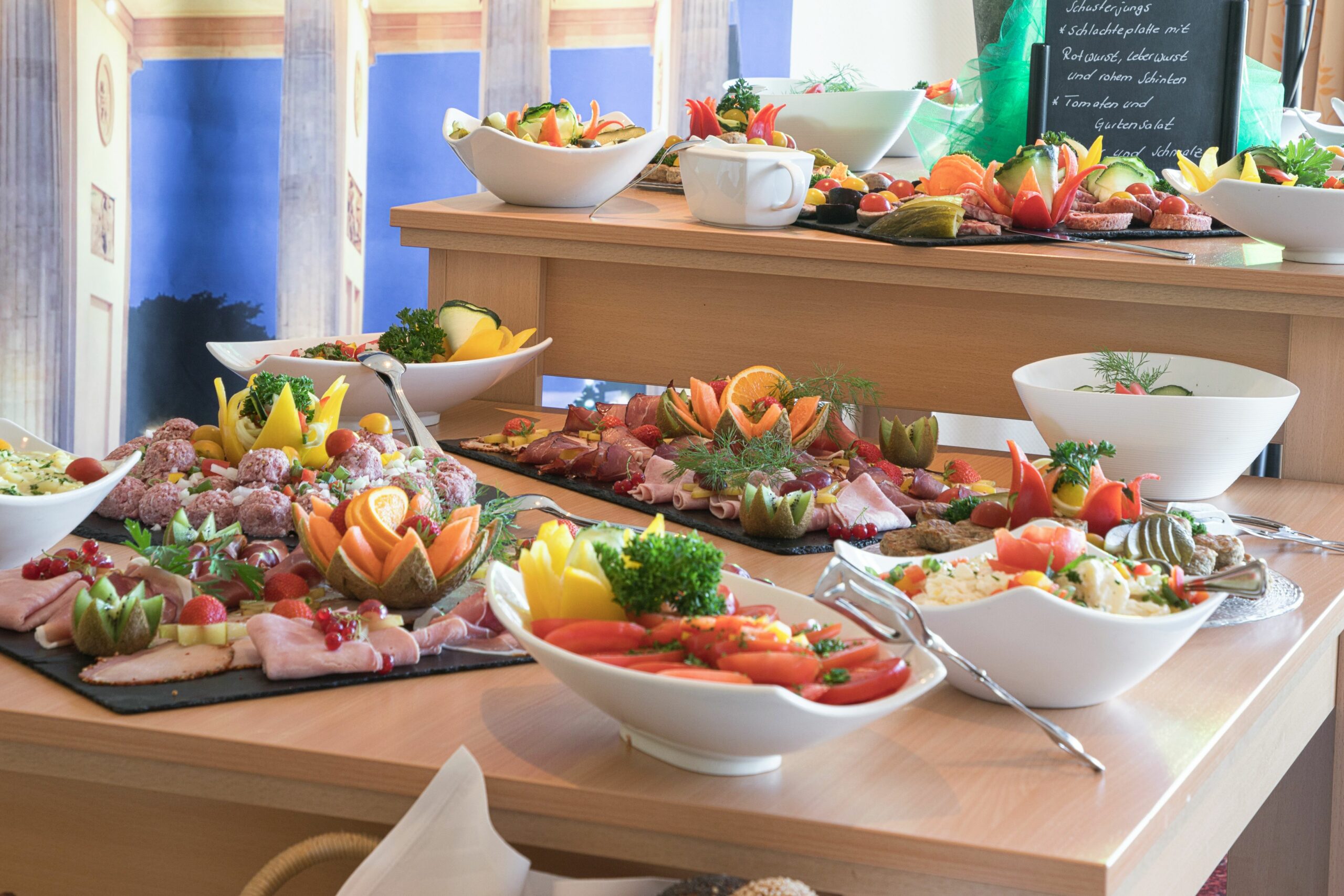 Warme Speisen servieren wir bis 14:00 Uhr. Das restliche Buffetangebot steht Ihnen bis 14:30 Uhr zur Verfügung.